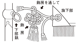 表裏2枚の間にネル芯を入れて縫い合わせ、周囲を四段七宝結びのフレンジで仕上げます。フレンジが橙色糸の金茶タイプと、金色糸で豪華に見える金色タイプの2種をご用意。オリジナルで作る優勝旗にもかかわらず価格もリーズナブル。