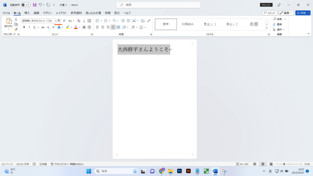 ただしワードの場合は、基本的に1枚につき1文字になります。大きくしすぎるとはみ出てしまいますし、ちょうど良いバランスを取ろうと思うと、少し手間がかかるでしょう。