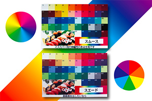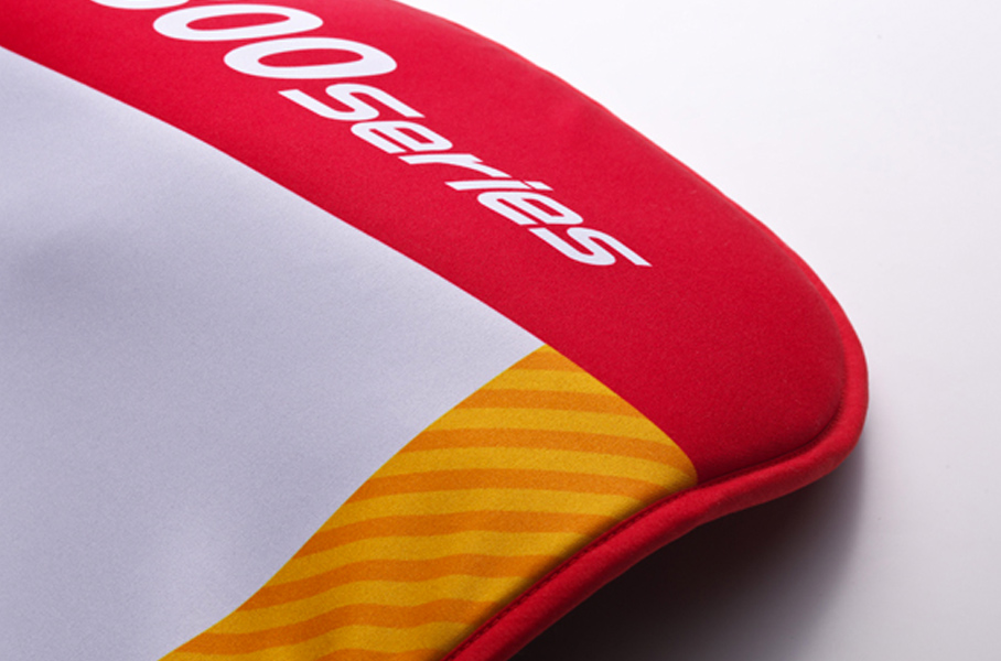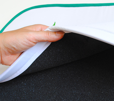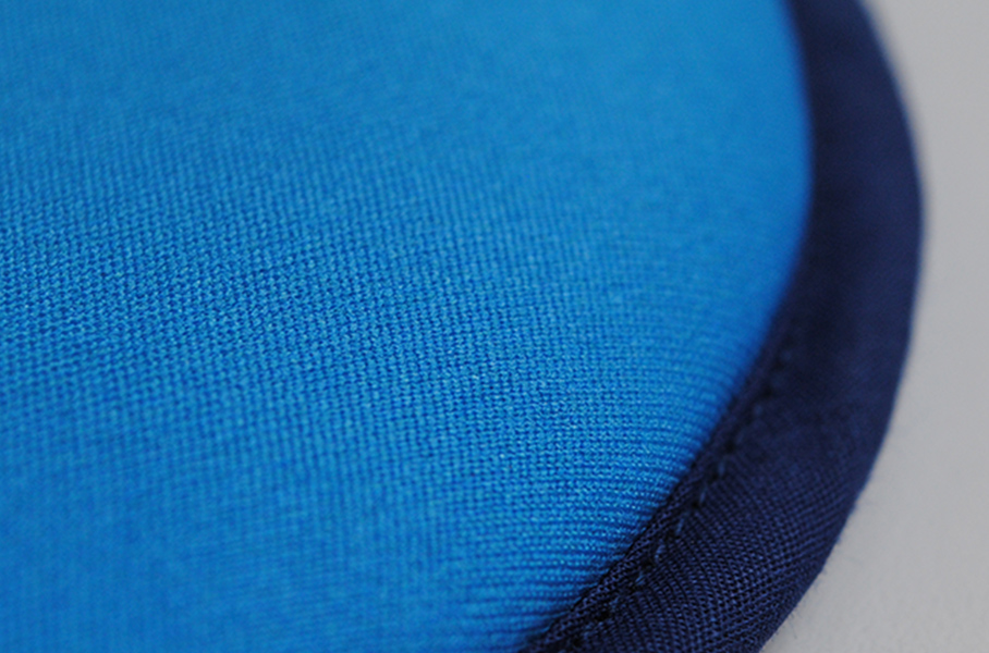 いずれもスポンジ付きです伸縮性があり滑らか素材のスムースは、光沢があって発色の良い印刷が可能。トロマットは伸縮性はありませんが、スムースより丈夫で耐久性に優れています。いずれもウレタン素材のスポンジ生地と重ね合わせ、周囲をパイピングして仕上げます。