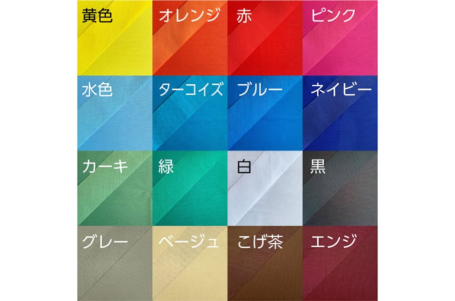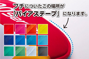 バイアステープは全16色。椅子カバーのデザインと同色で揃えたり、ポイントとして目立つ色にしたりと自由自在。