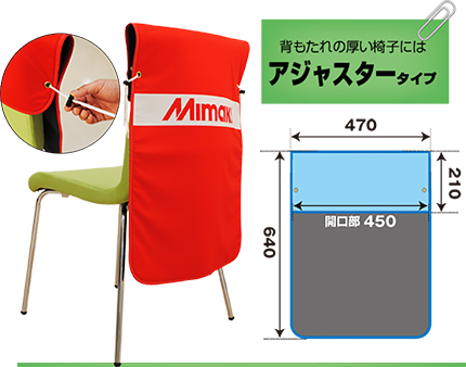出来ます!展示会や合同企業説明会などのイベント会場では、防炎が義務づけられている場合が多いです。当店なら納期も余分に掛かることなく「防炎タイプ」の椅子カバーが製作可能です(トロマットのみ)。その他、紙が入れ替えられて、メッセージが手軽に伝えられるポケット加工もできます。