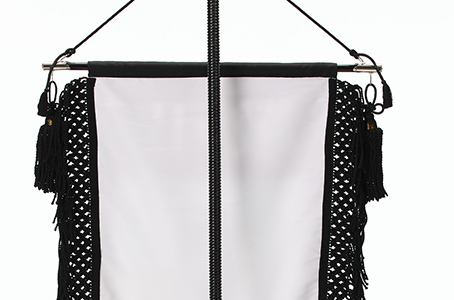 だから豪華に見えます!塩瀬という高級生地に昇華転写捺染という手法で染め上げた表面にあたる旗と、白無地の裏面との間にネル芯を挟んで縫い合わせ、周囲に真っ黒な四段七宝のフレンジを縫い付けて仕上げます。敬弔のシーンでお使いいただくに相応しい、ボリューム満点の豪華なフレンジです。