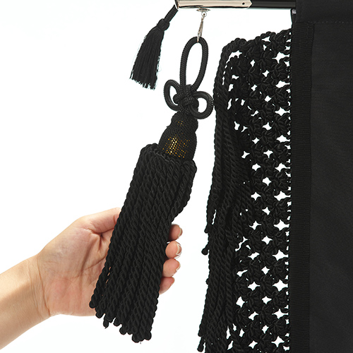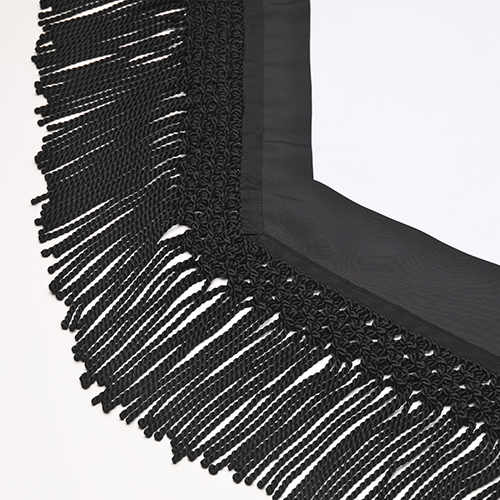 真っ黒でボリューム感たっぷりの四段七宝フレンジがついた、高級かつ落ち着いた敬弔旗です。