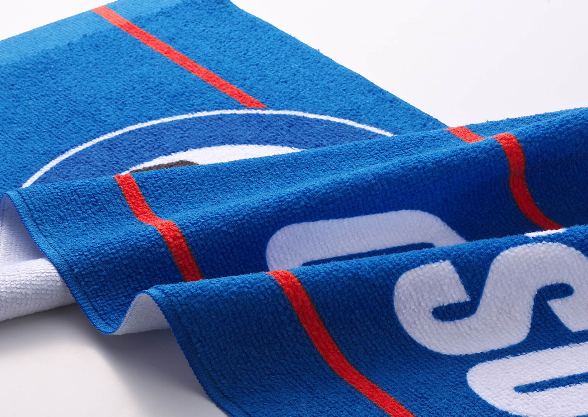 スポーツタオル制作の魅力は何と言っても大胆なデザインを、よりダイナミックに表現できること。そしてタオルとしての実用性に富んだ製品に仕上がる、ということです。