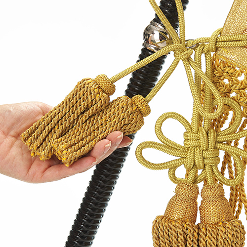 フレンジが橙色の金茶四段七宝結びで、お求めやすいタイプです。