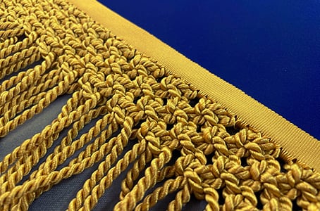 優勝旗に欠かせない豪華なフレンジは、リーズナブルな橙色糸の金茶タイプと金色糸で豪華な金色タイプの2種類をご用意。ポール、三脚、ケースなどの関連備品もすべて当サイトで揃います!